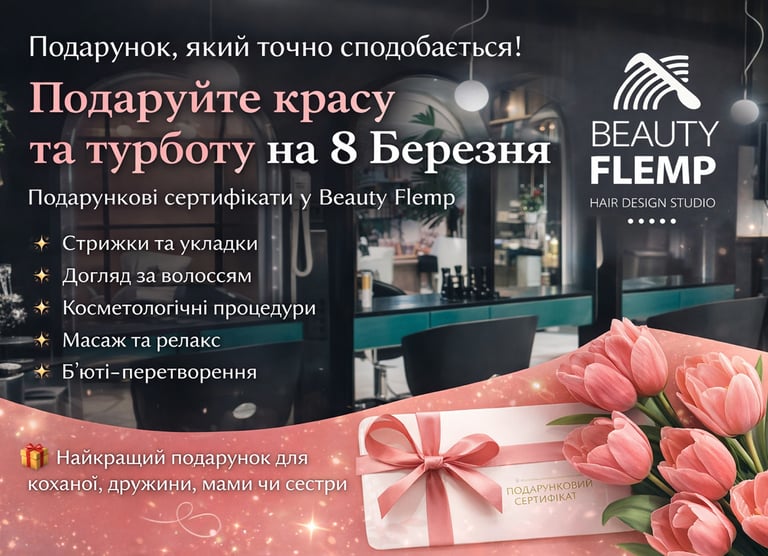 У Beauty FlEMP доступні подарункові сертифікати на будь-яку суму або процедуру: